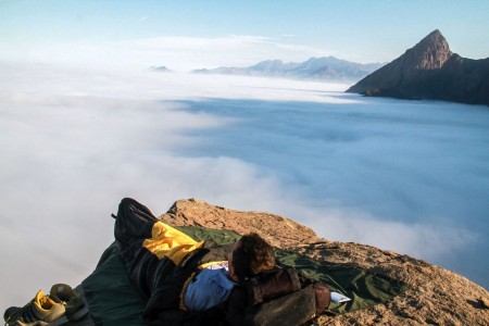 (On this rock you can sleep, watch the sunset and wake up on the clouds)